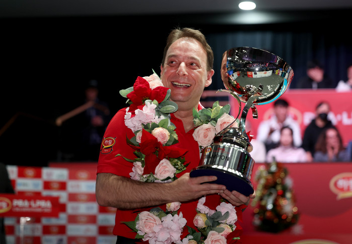 [Brilliant Billiards=김철호 기자] 스페인 3쿠션의 ‘살아있는 전설’ 다니엘 산체스(웰컴저축은행·51)가 프로당구 PBA 2개 투어 연속 정상을 밟았다. 7일 경기도 고양시 ‘고양 킨텍스 PBA 스타디움’에서 열린 프로당구 2025-26시즌 8차투어 ’하림 PBA-LPBA 챔피언십’ PBA 결승서 산체스는 강동궁(SK렌터카·45)을 상대로 세트스코어 4:2(9:15, 15:9, 15:8, 15:0, 9:15, 15:9)로 승리하고 통산 세 번째 우승 트로피를 들어올렸다. 이로써 산체스는 지난 11월 초 열린 직전 투어 ‘하이원리조트 챔피언십’ 정상에 오른 지 불과 26일 만에 또 하나의 트로피를 들어올렸다. 통산 세 번째 우승. 상금 1억원을 더한 산체스는 시즌 랭킹 1위(2억8150만원·337,500pt)를 굳게 지켰고 누적 상금 4억원을 돌파, 종전 11위서 6위(4억200만원)로 뛰어올랐다.