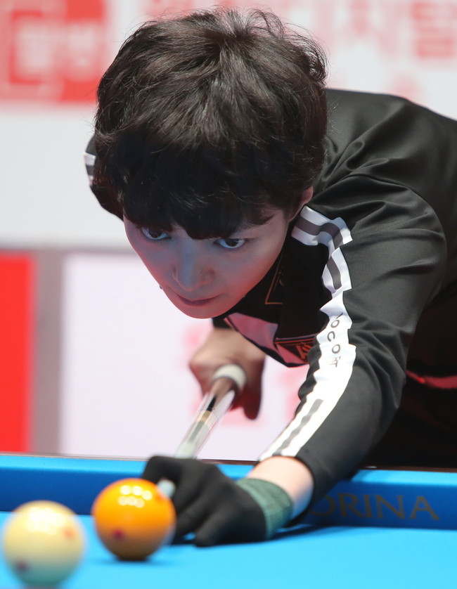 ▲ photo / LPBA 7차대회에서 이미래를 3대1로 꺽고 3번째 우승을 차지한 임정숙선수가 볼을 조준하고 있다 |