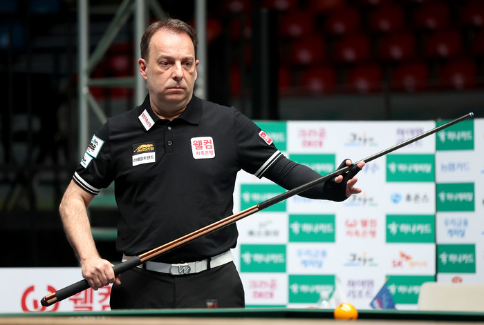 ‘스페인 전설’ 다니엘 산체스(웰컴저축은행)는 A조 최종전에서 세트스코어 3:1로 김종원(웰컴저축은행)을 제치고 월드챔피언십 첫 16강 진출에 성공했다. 직전 시즌 월드챔피언십에서 조별리그에서 탈락한 산체스는 월드챔피언십 우승으로 화려한 시즌 피날레에 도전한다. A조 2위로 16강에 통과한 산체스는 12일 밤 9시30분 H조 1위 로빈슨 모랄레스(콜롬비아·휴온스)와 격돌한다.